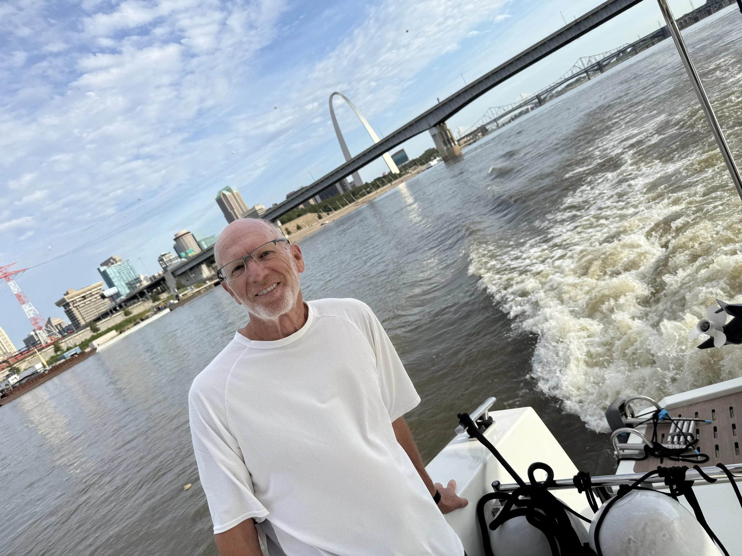 Down the Mississippi -past the Arch - to where we can turn off onto the Ohio. Long day- 120 miles.