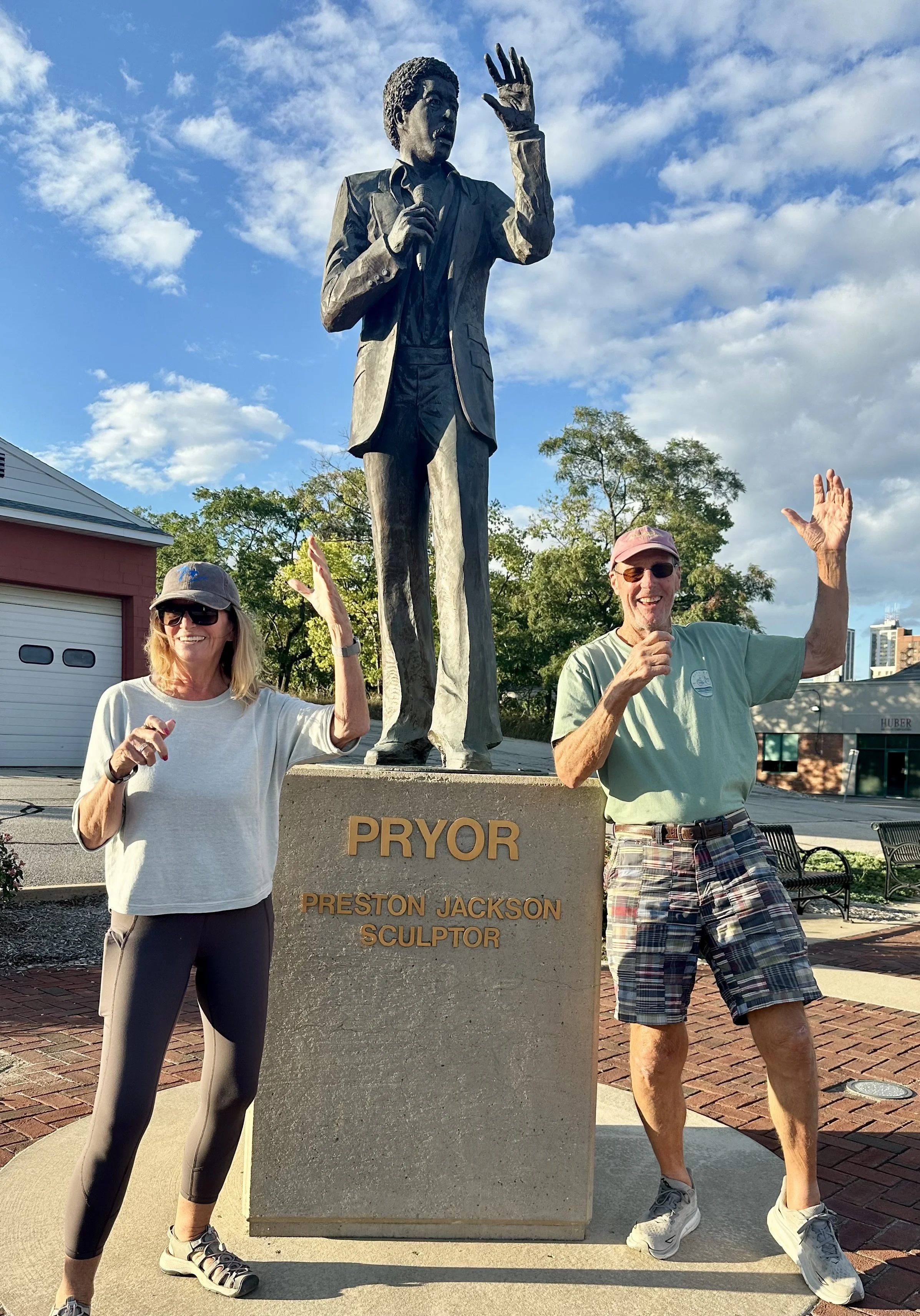 Among the things we saw today include fish jumping out of the water and white pelicans with black-tipped wings. And we got to pose with the Richard Pryor statue.