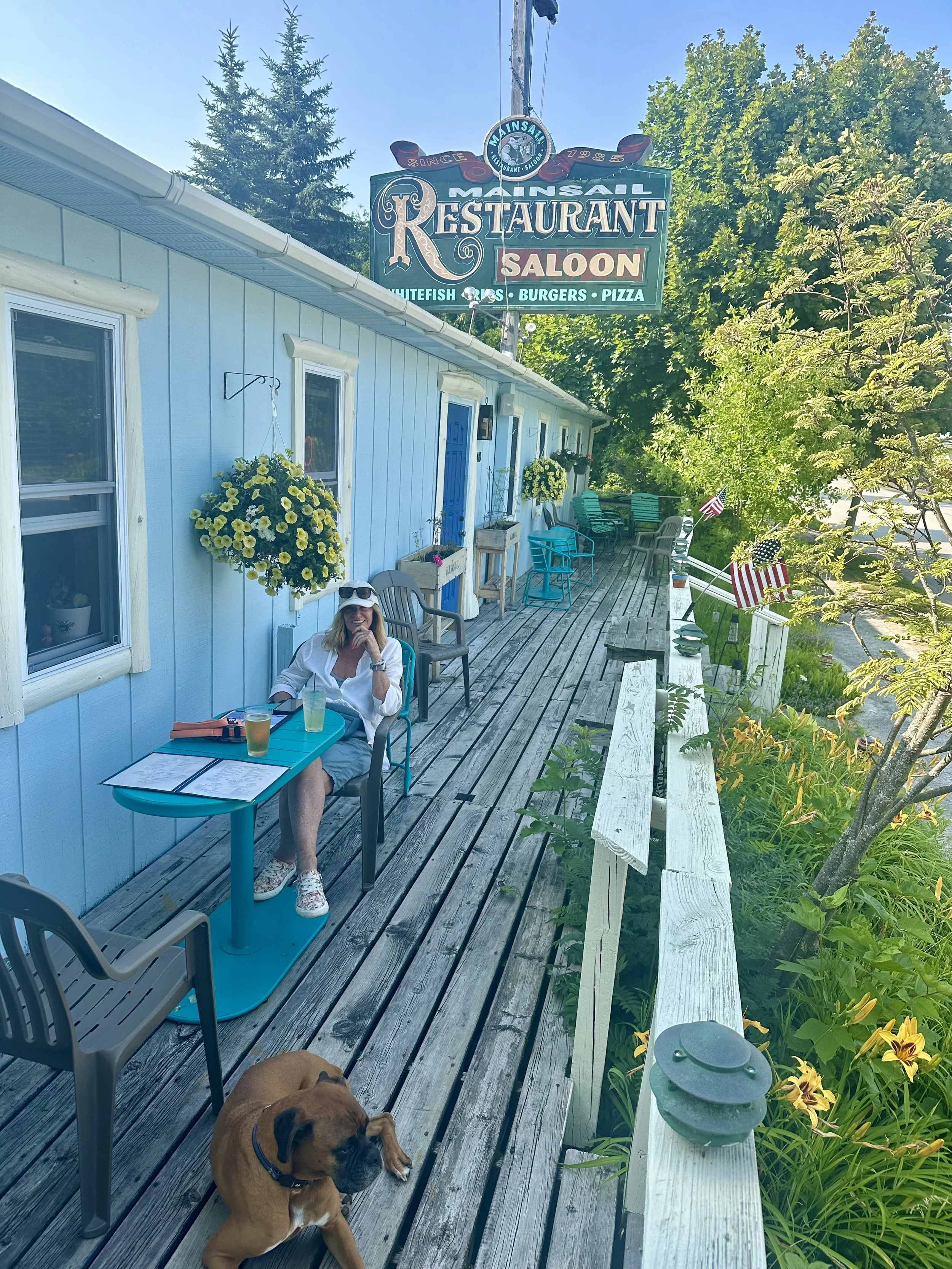 Dinner at the only restaurant in DeTour. As usual, we eat outside so Zander can join us. Notice the day lilies? They are everywhere up here and we have really been enjoying them.