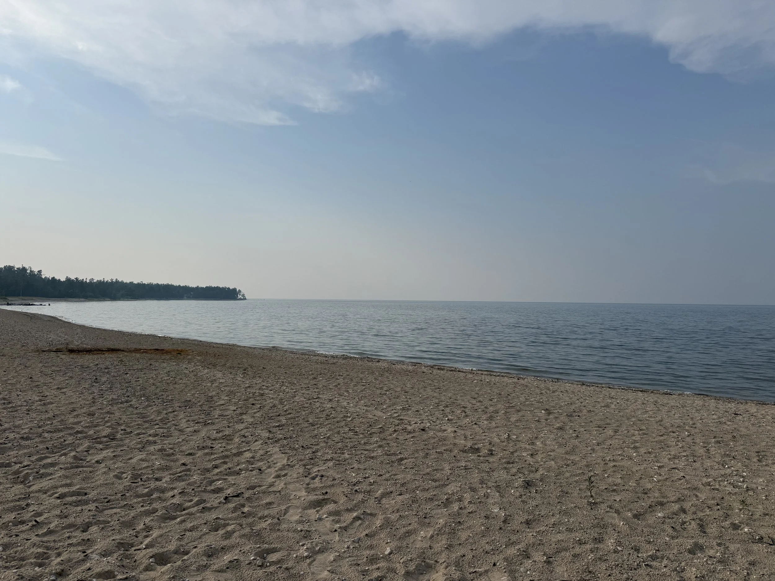 The way up the eastern shore was easier than yesterday; however, it turns out what we thought was fog is smoke - although there is no smell of smoke. Apparently, there are wildfires in Canada from which smoke is drifting down to Michigan.