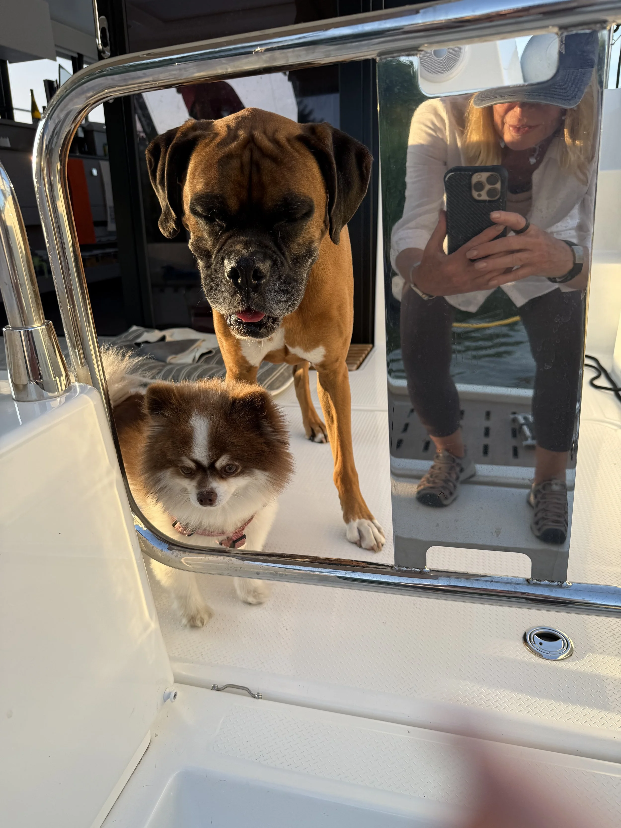 Genny’s dog and Zander were wanting off the boat.