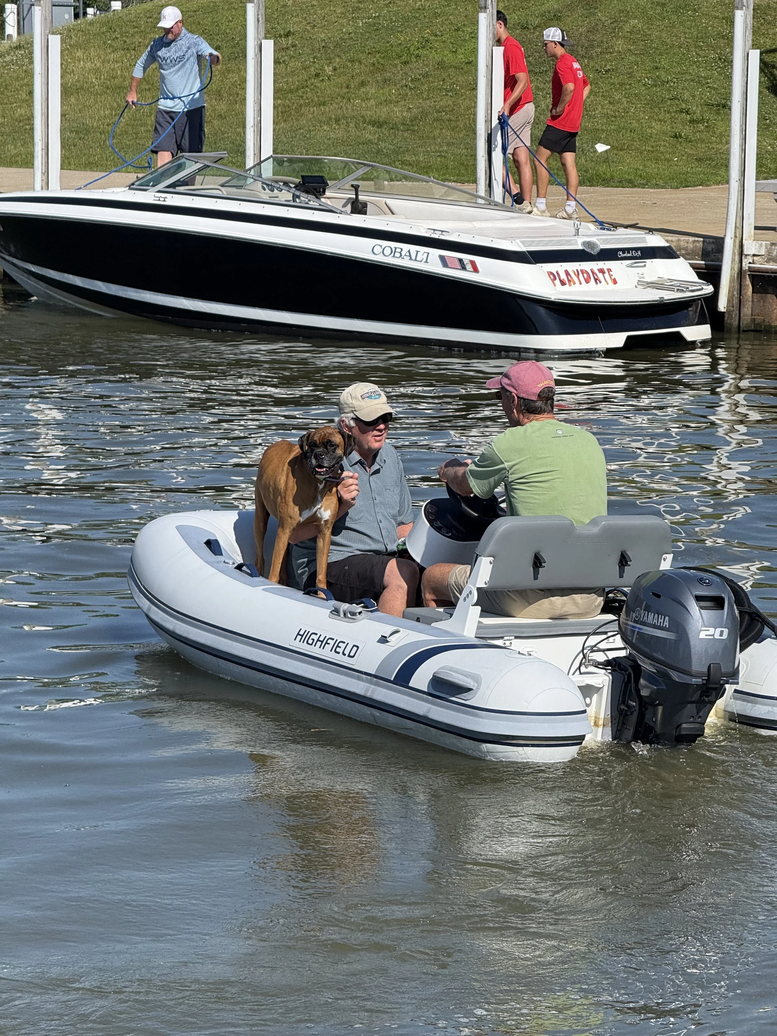 At the end of the day, John and Tom, along with Commodore Z, did a tour of the yacht club in our dinghy (the Little Delite). The locals have docks and huts here and there are also homes with docks on the water. Looks like a lot of summer fun goes on here!