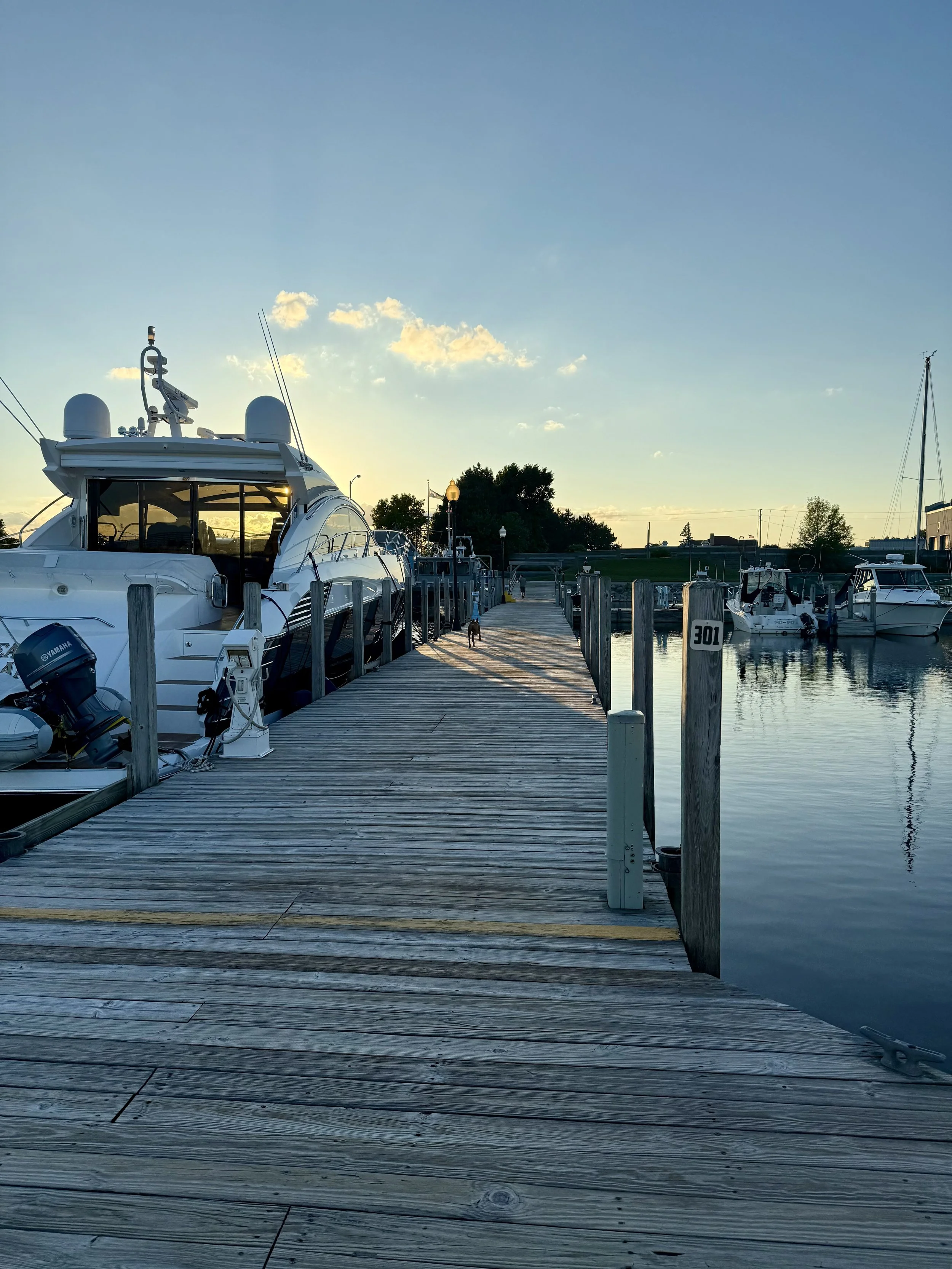 July 12, 2025: Our Delite left Harbor Beach at 6 am trying to beat a weather front. Everything was good until about 30 minutes outside of Thunder Bay when fog descended. Being experienced with fog, Rayma kept driving and we made it safely into the Alpena harbor about an hour before the rain started. The rain cleared by the time Heather & Crew arrived around 6 pm.