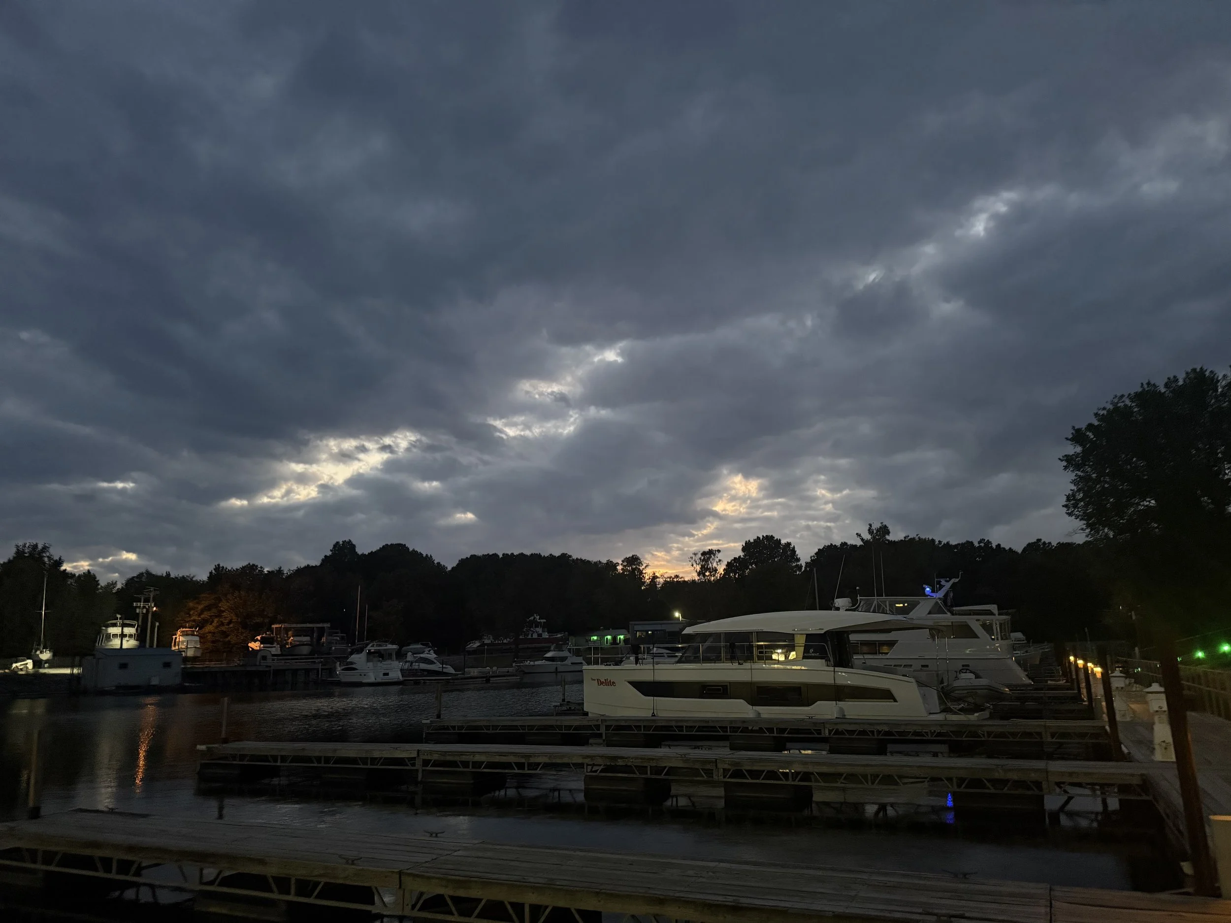 Our Delite in her slip at Green Turtle Bay. Those clouds? Well they cooled things off very nicely.