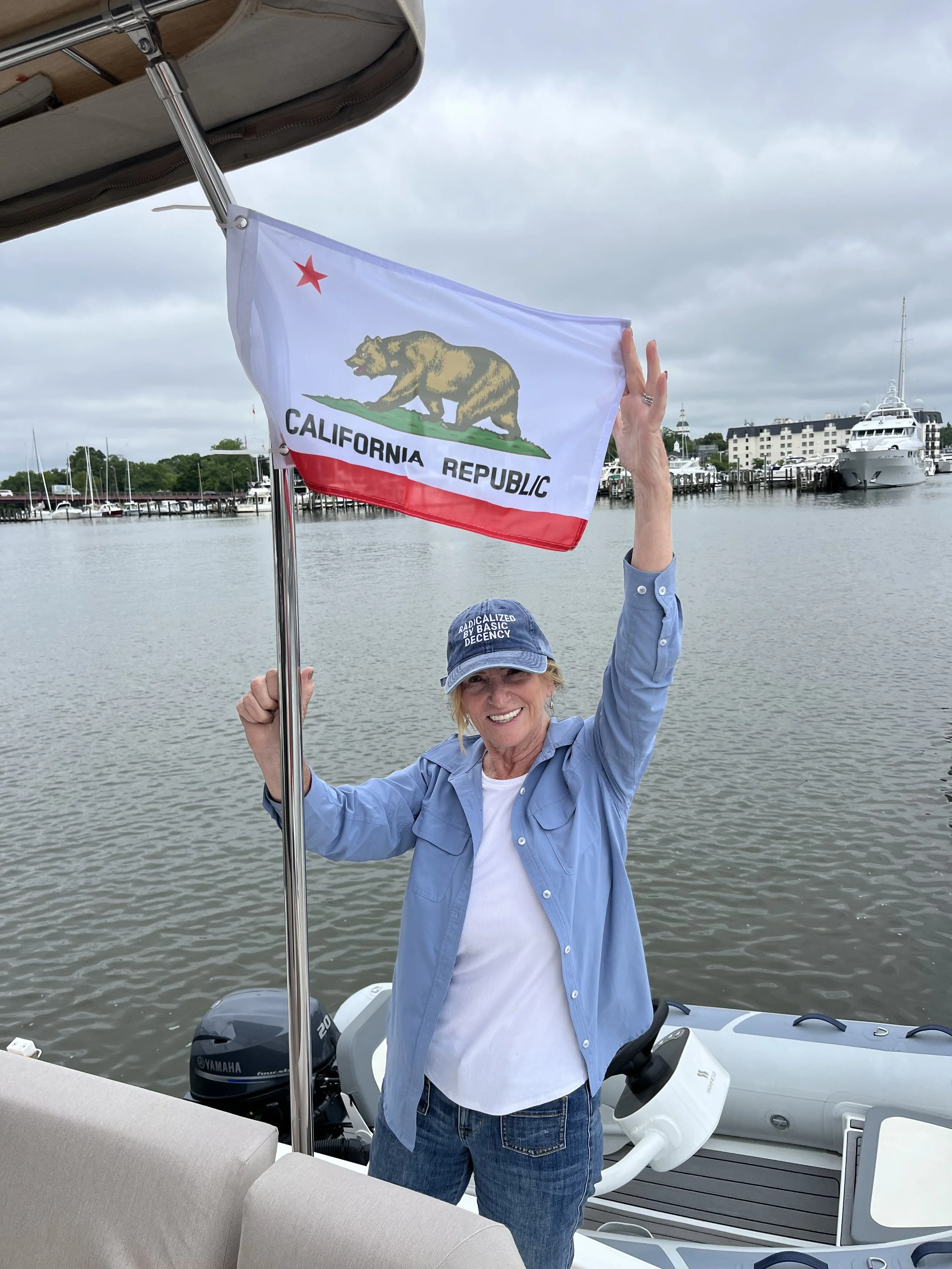 Seriously time to get ready to push off - including the flags to fly on the boat. Given the current politics (because they will be going into Canada), they chose a California flag and the Looper Association flag.