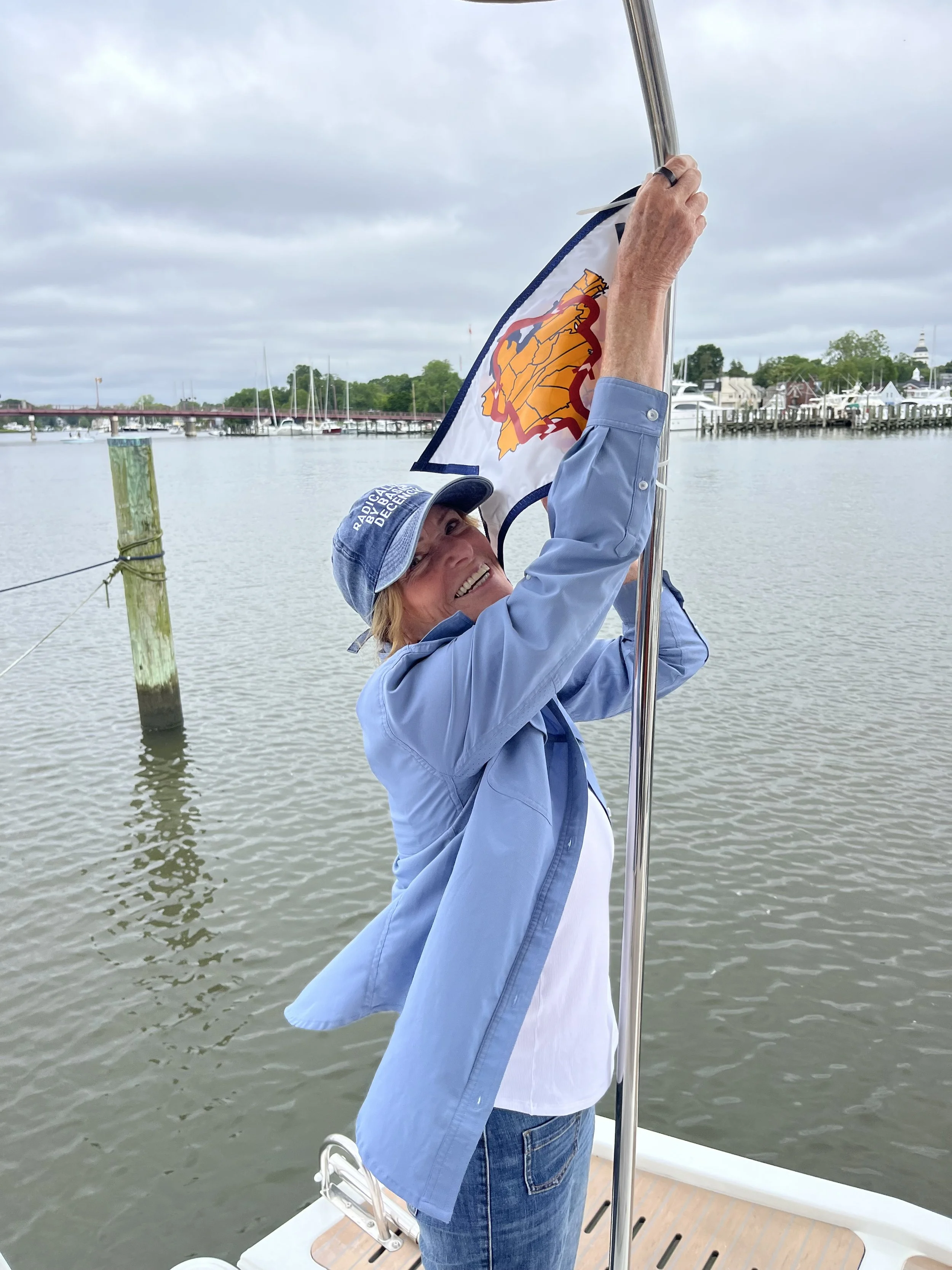 Raising America's Great Loop Cruising Association flag on the boat.